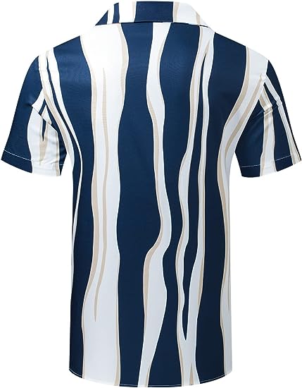 Stylish Design: men's hawaiian shirt with a variety of elements such as stripe, The design is eye-catching and perfect for a beach vacation or casual summer outing.
